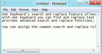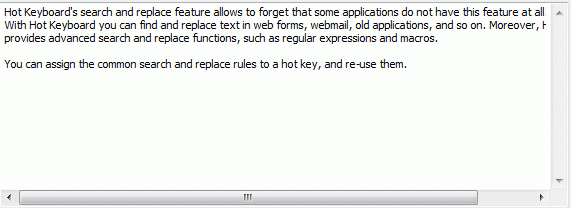 This method is extremely useful when you need to apply standard text replacements often - you can create a macro and then re-use it when needed. It copies the selected text to the clipboard, makes replacement and pastes the text back into application.Hot Keyboard provides very strong and advanced search and replace engine, and that's great for advanced users. However, those who don't need several interactions with regular expressions can use it too.