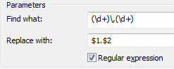 Regular expression - treat patterns as regular expressions (Hot Keyboard uses Perl-Compatible Regular Expressions). For example, to replace decimal delimiter in numbers from comma to dots, use this rule: