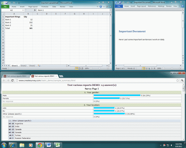 Let's imagine there is a job, when we need to have opened a web page, one Word document and one Excel spreadsheet. With Hot Keyboard we can open all these windows in a single click and, moreover, arrange them on the screen the way we prefer.