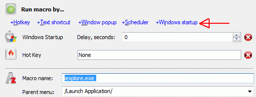 2. In macro properties add "Windows startup" activation method