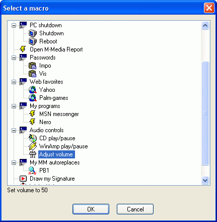 This macro allows you to execute any other Hot Keyboard macro (including a link to another macro). The main purpose of making such a kind of macro is that you can create one macro and then refer to it anywhere else, but when you change the original macro, your changes instantly affect all macros that refer to it.