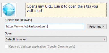 URL to browse enter the URL (web page address) you want to be opened. You can import Internet Explorer's favorites by clicking the Favorites button.